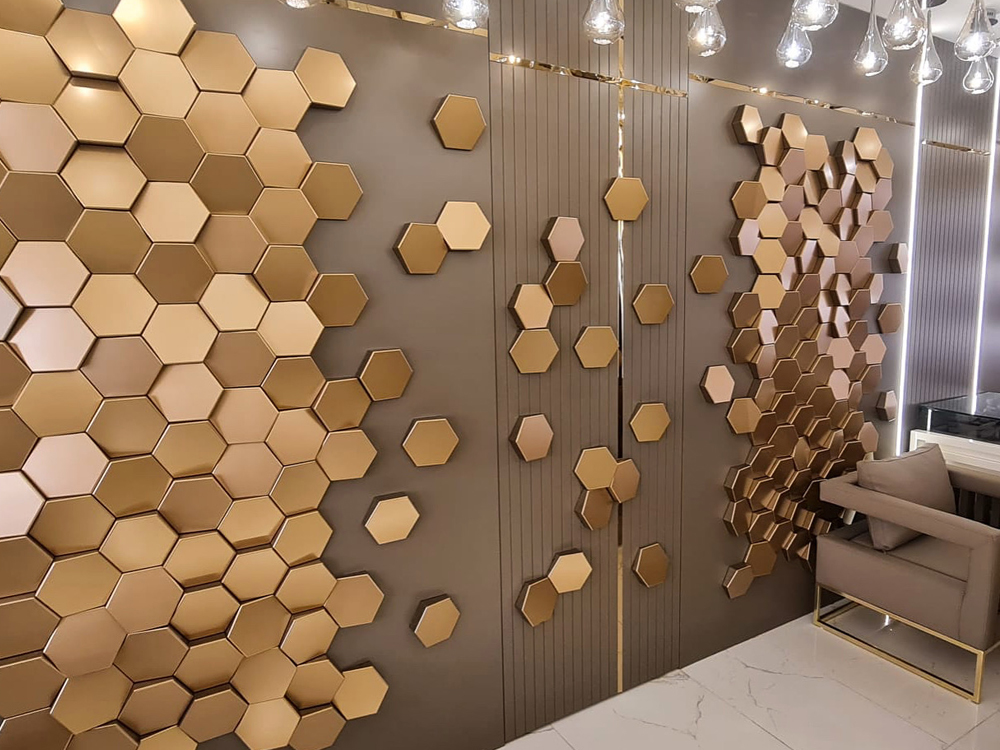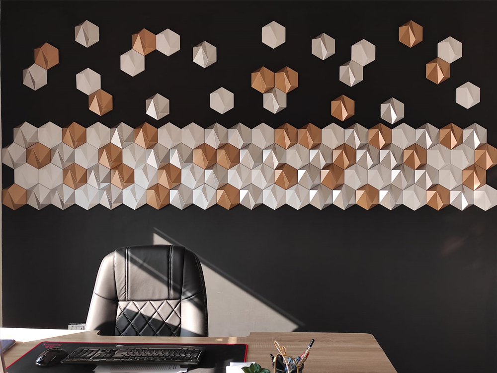 Šesťuholníkový stenový panel sa skladá zo šesťuholníkových geometrických tvarov. Keďže produkt má rôzne výšky, vytvára na povrchu realistický trojrozmerný efekt. Na rozdiel od 3D tapiet vytvára skutočnú hĺbku. Odráža karnevalovú atmosféru v priestore, kde je použitý. Vďaka svojej praktickosti, nízkej hmotnosti a ľahkej použiteľnosti sú šesťuholníkové stenové panely preferované na odlíšenie existujúcich priestorov s ohľadom na pevnosť a kvalitu produktu.