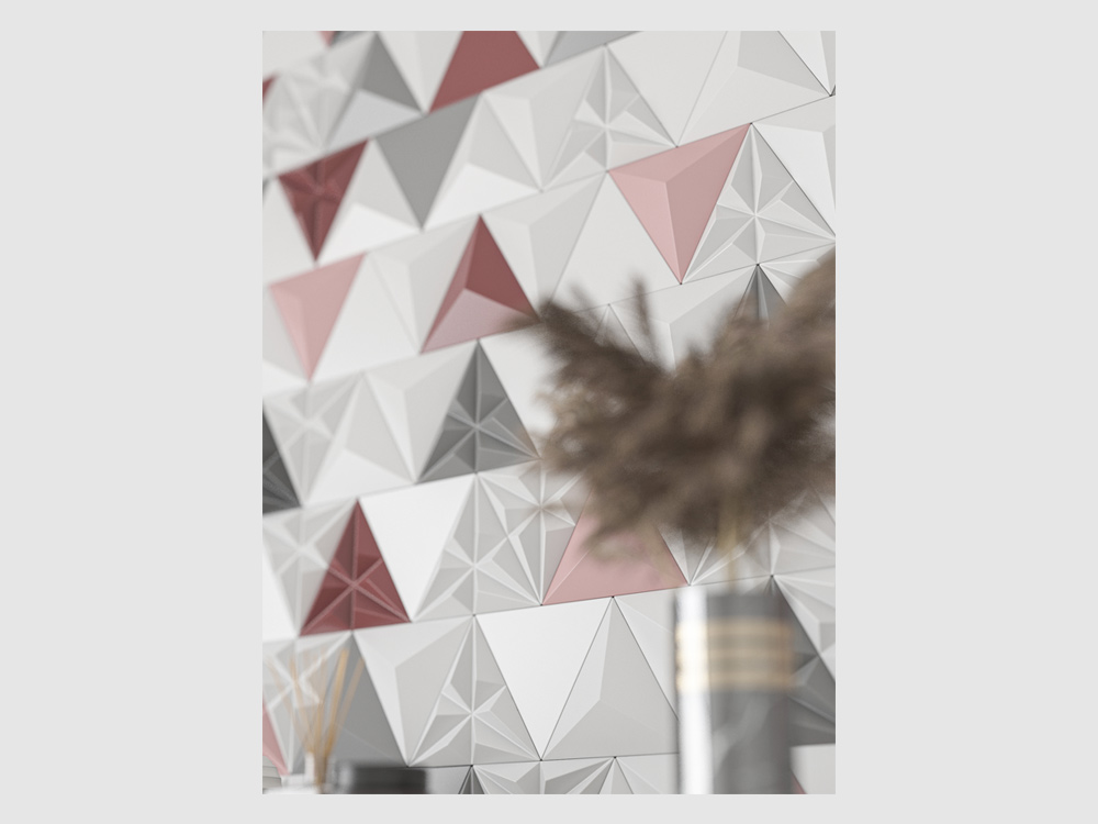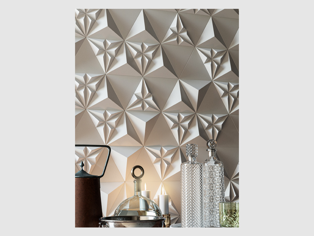 S týmto novým dizajnom predstavujeme prvý model 2. generácie a ponúkame vám nekonečné možnosti kombinácií troch nezávislých línií. S touto novou generáciou 3D obkladov, pri ktorých môžete použiť tri rôzne dlaždice v tvare Flat, Pyramid a Polygon spolu alebo samostatne, váš priestor získa pocit elegancie, ušľachtilosti a veľkoleposti.