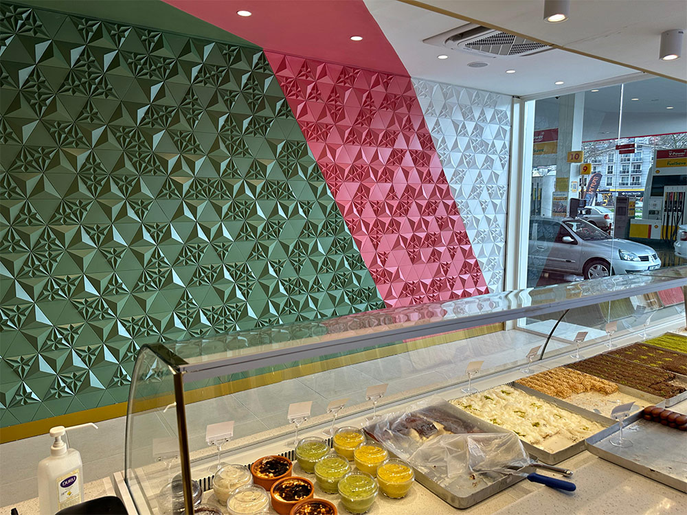 Vďaka jednoduchému systému montáže, rôznym farebným možnostiam a detailom balenia je podobný modelom prvej generácie. Model NAVA, ktorý poskytuje realistický trojrozmerný vzhľad s modernými líniami a symetrickými tvarmi, môžete ľahko zvoliť pre dekoráciu stien vašich rezidenčných a komerčných projektov.