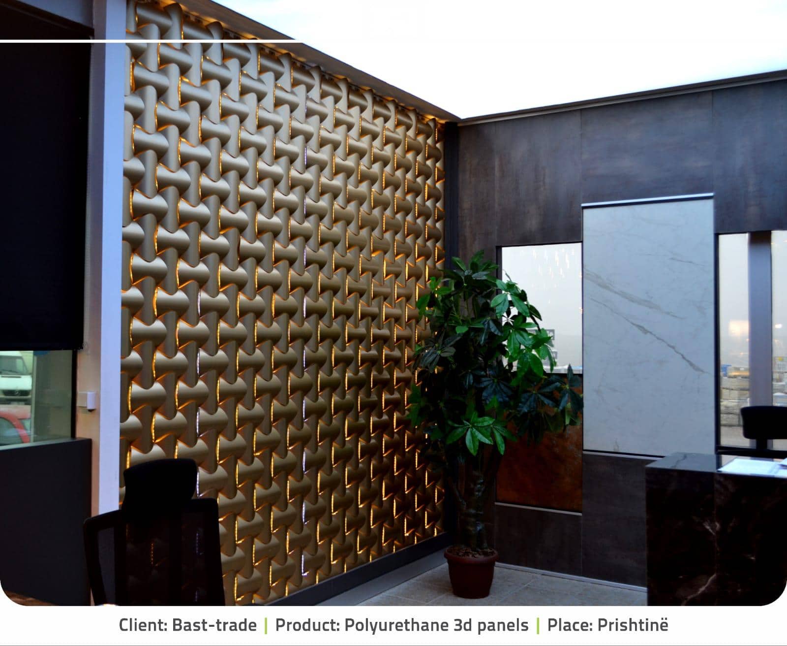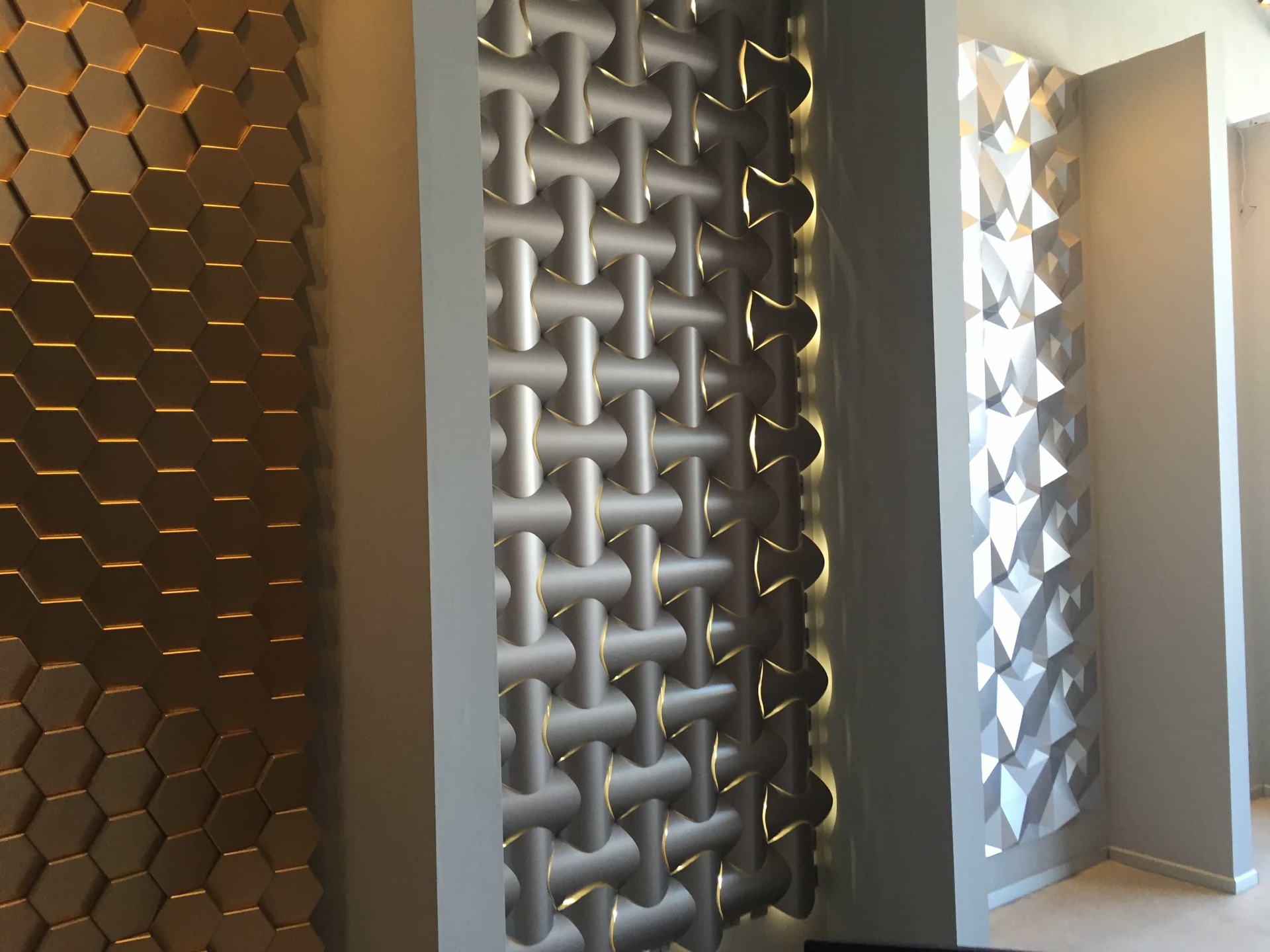 Model Spline, prvý produkt našej kolekcie 3D obkladov stien; svojím dizajnom, rôznymi farebnými alternatívami a hrou svetla a tieňa vytvorenou trojrozmerným vzhľadom dodáva priestoru luxusný, ušľachtilý, veľkolepý a veľkorysý vzhľad. Panely sú vhodné na vnútorné steny a stropné povrchy.